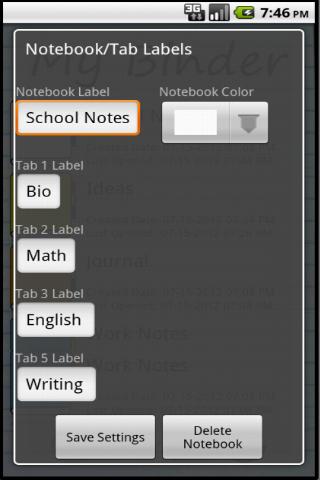 Long Press notebook for quick access to edit labels, notebook color, or to deleted the selected notebook.
