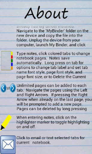 Touch notebook, add notes, touch color coded tab to change notebook tab.