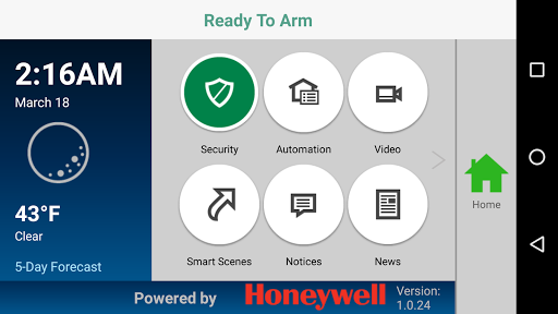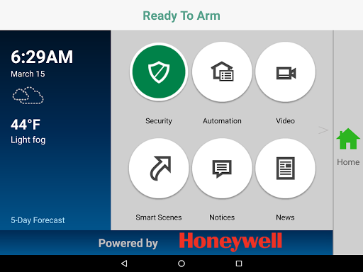 The Honeywell My Home Android app allows homeowners to control the system anywhere on premises within their Wi-Fi coverage areas. The app provides local control of the security system, and if so equipped, control of Z-wave enabled lights, locks, thermostats, and more. It also adds the ability to view system cameras from your device. And it’s a terrific way to help you save money on your energy and utility bills, conserve resources and live a more comfortable, efficient lifestyle.