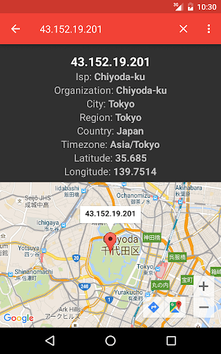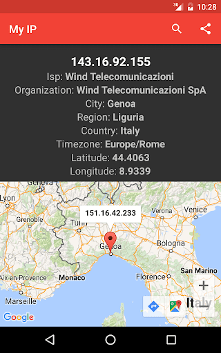 My IP Address shows your IP info and Geolocation, and allow you to query any IP address you want.