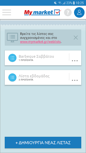 - «Συγχρονισμός» στις λίστες αγορών όταν ενημερώνονται από διαφορετικές συσκευές αλλά και μέσα από τις Weblists με εγγραφή στο site του My market.