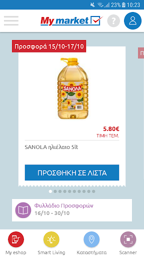 - «Ξεφύλλισμα» του πρόσφατου φυλλαδίου προσφορών προσφορών από την αρχική οθόνη της εφαρμογής και εύκολη προσθήκη των προϊόντων στις λίστες αγορών.