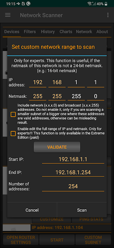 * Scan custom network range, change netmask, calculate network range