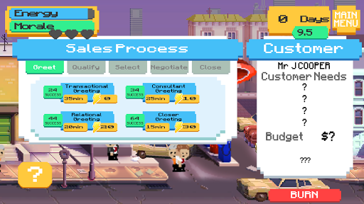 The Goal is to keep your Job for the most days in a row in a sitting, by selling cars and avoiding written warnings.
