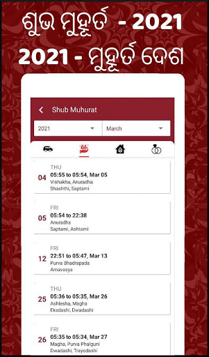 Odia Muhurat 2021: all important muhurats like marriage Muhurat / viva muhurat, vehicle purchase, property purchase, griha pravesh dates for the year 2020 and 2021 available in this app - Best Muhurat 2021 app (ଓଡ଼ିଆ କ୍ୟାଲେଣ୍ଡର)