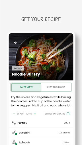 Plant Jammer is both for people who want to learn how to cook a new cuisine and experienced cooks to discover simple healthy recipes! You create recipes and the app helps you perfect it. You choose the ingredients that are already in your fridge and use our Artificial Intelligence to create a list of recipe recommendations, improve the recipe, and get step-by-step cooking instructions for great recipes. This recipe app was created through a collaboration between professional chefs and data scientists, and makes cooking vegetarian recipes a dream and helps you eat healthy. Start cooking tasty recipes for a delicious diet!