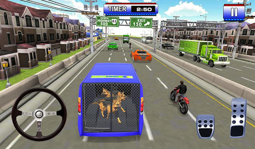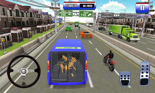 Get ready for the latest and adventurous concept of animal transportation job, you have to drive police van to transport K9 police Dog.