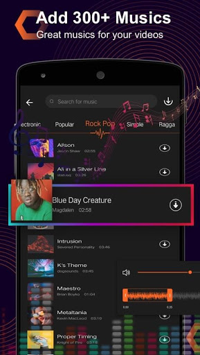 -Hundreds of background music recommended for you, local songs are also allowed to add It's easy to use make music video