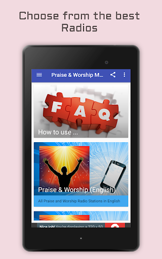 Listen to top Praise & Worship Music on your android device. Get access to the best Praise & Worship Radio Stations for Free and enjoy Gospel, Christian Contemporary, Worship and Praise Music with this free App!