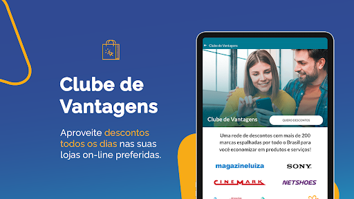 - Clube de Vantagens: usufrua de até 75% de desconto em diversos estabelecimentos.