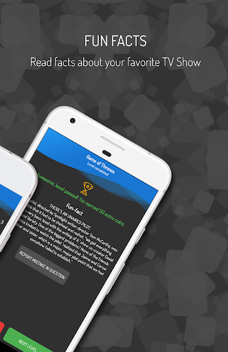 We offer most popular TV Shows and we constantly adding more and more quizzes. So stay tuned, because in next update you can get a surprise! Every quiz have 7 rounds and every round have one question with 4 options to choose. Only one answer is correct. You can earn coins only once, choosing right answer for a first time. Also, you can earn extra 50 coins, if you answer on all questions correctly in a row. So there is a lot to win! And it's not the end. After correctly finishing every level, you can win an interesting and fun facts about your favorite TV Shows, so you'll be able to learn something more about that show than it's story ;). Quizly is the best TV Shows quiz on the internet, we check every question twice before put it into the game. But - everyone make mistakes. If you think, that in some questions in our quiz are inccorrect, feel free to report those question at the end of a level. We will carefully check it again :)
