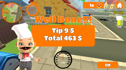 Your goal is to deliver pizzas to the different clients as fast as possible. If it should take you too much time, the pizzas will be free for the client and you will not get any tip.