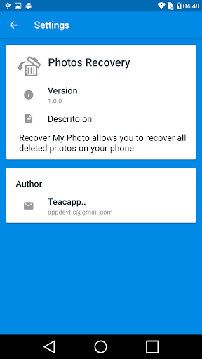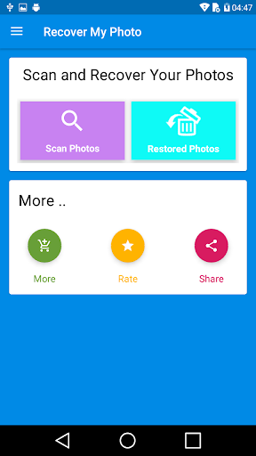 This app Recover My Photo is different from other photo recovery Apps, and offers users a much more simple and easier interface. With several clicks, you can perform the whole recovery on your own. The whole recovery process is 100% safe and fastest way to recover photos from your mobile internal memory and SD card like External memory.