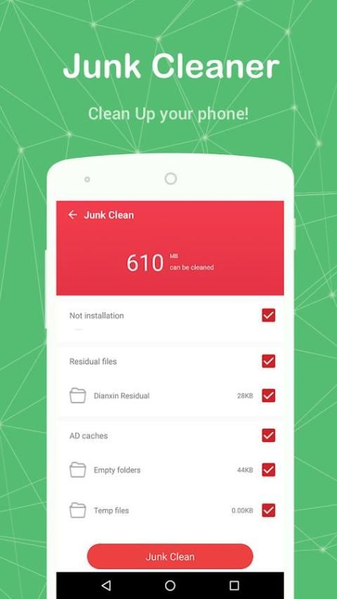 Clean the junk files that occupy your storage space. Keep your phone from running slow. Optimizing performance by removing all types of useless Android system files, app caches, residual files etc. Just one-tap, enjoying a faster phone.