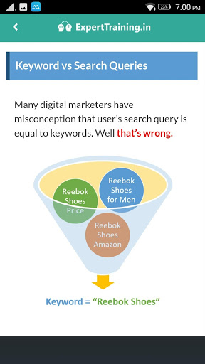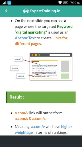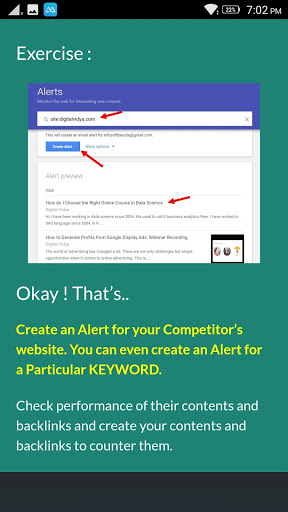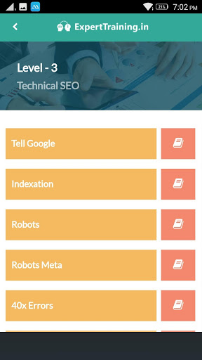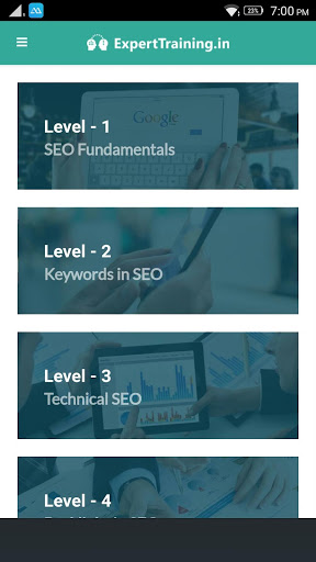 This SEO Learning App covers total 6 Levels and has step by step instructions to perform SEO activities for any website. Have a look at detailed syllabus :-