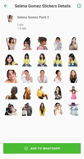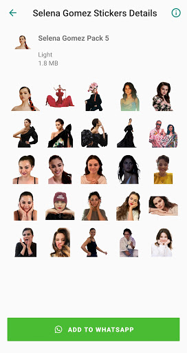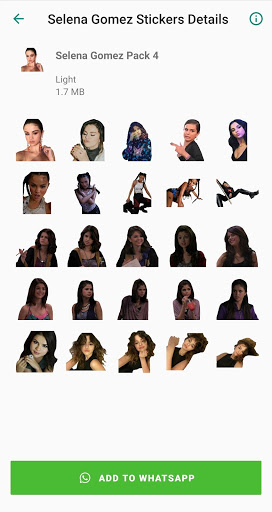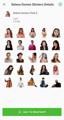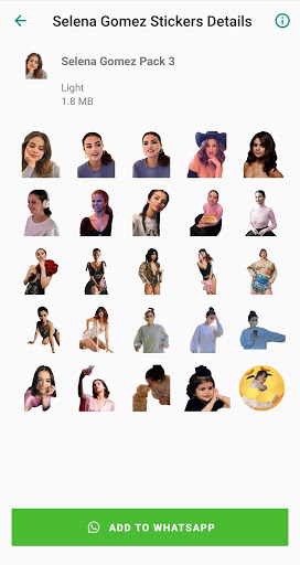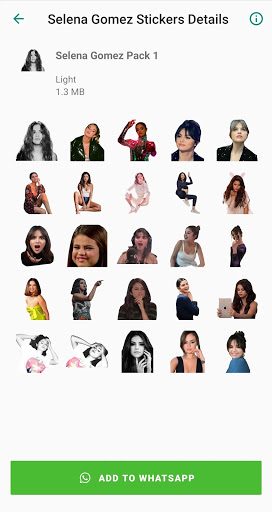 Stickers packs for WhatsApp about the famous pop singer Selena Gomez.