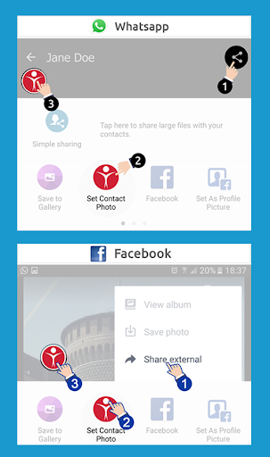 You can find contact photo on Whatsapp profiles or social media (Google, Facebook, Twitter, Instagram, Viber, LinkedIn, Google Plus) and set as contact photo. If you select one contact see firstly Whatsapp profile photo. Also set contact photo from Gallery or Camera.