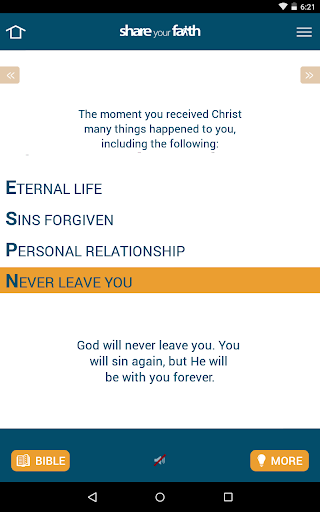 The Share Your Faith App helps you easily share the gospel of Jesus with others. The app will help you walk someone through the bridge diagram and help the make a decision for Christ..