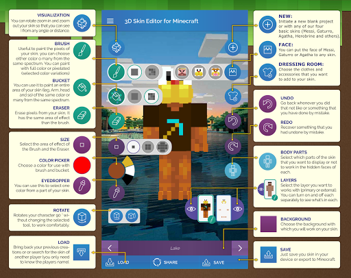 It also supports both skin layers of version 1.8 of Minecraft, allowing you to add details in relief to your skin.