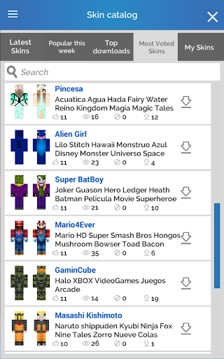 - A online catalog of skins uploaded by users, from where to download new skins already made.