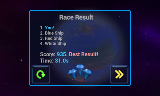 Four spaceships compete in each race. Only the winner will be admitted to the next racing!