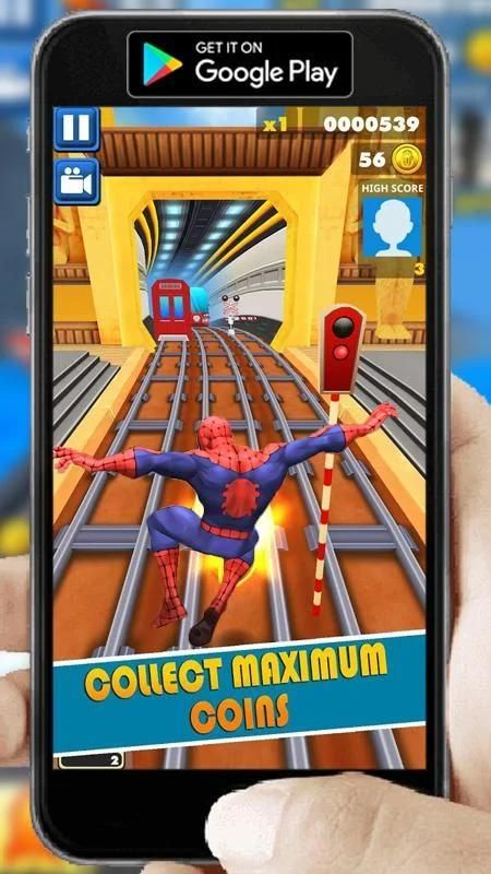 2-Collect the coins in spider-man subway rush surfing 3D.