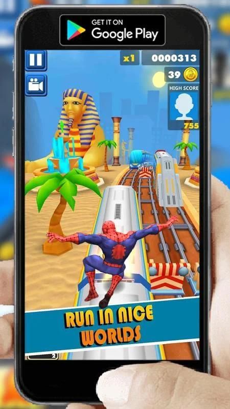 download this addicted game "spider-man hero : amazing subway rush super world" and start playing on hoverboard and skateboard!
