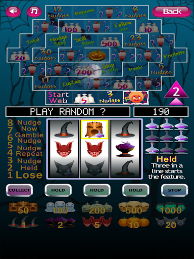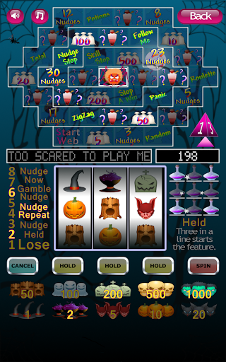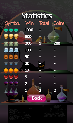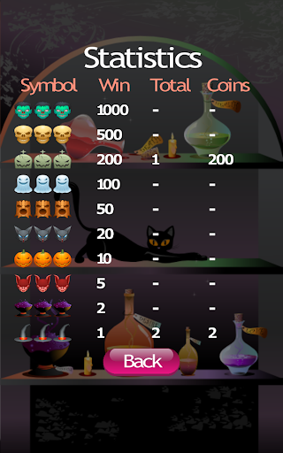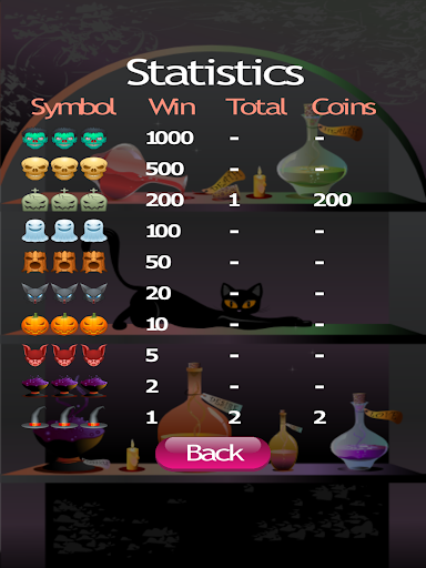 A statistics screen is included to see how many times you have won. Press the flashing red spin button to start the spooky Halloween slot machine reels moving. We wrote this spooky Halloween slot machine so you can have fun playing a slot machine without gambling real money. Thank you for downloading and playing our spooky Halloween slot machine.