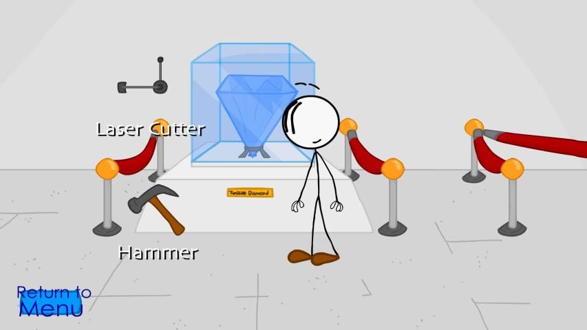 Stickpage presents Henry Stickman's original adventure, the one that landed him in trouble with the government. Play this interactive movie and choose your way to success or (entertaining) failure in the great diamond burglary.
