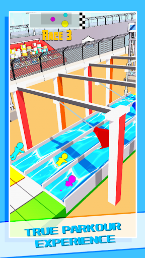 Very interesting and easy to play 3D racing game. Avoid different types of obstacles, challenge harder and finish the game. Over obstacles, ladders, swimming. Make sure to avoid all obstacles and reach the finish line safely. Three players play at the same time. You need to beat them to win.