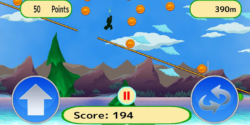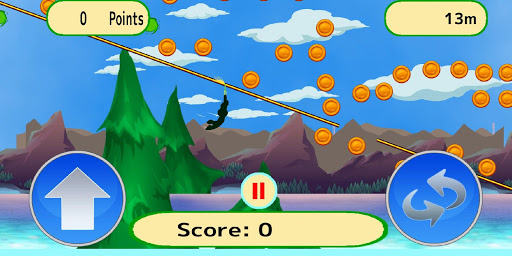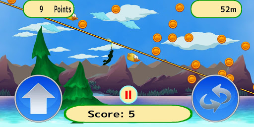 In this game you embody the spider stickman trying to escape from a huge mountain top through a ropeway! Use the rope to jump or flip and obtain the highest score!