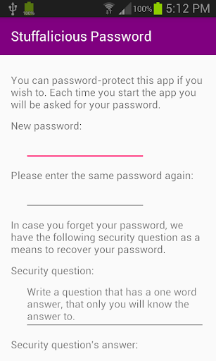 * You can keep prying eyes away from your important data by putting a password on this app if you wish to.