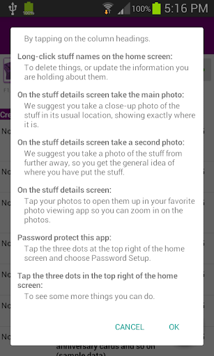 * Go through all those cupboards that you have no idea what is in them, and just add new entries into the app and take photos of your stuff.