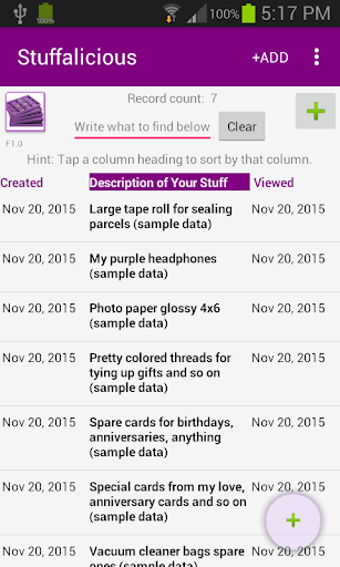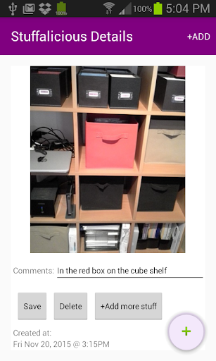 Find your stuff around your home, your garage, your work place, your car, anywhere, using keyword searches and photos.
