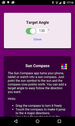Use the old boy scout method and turn your phone, tablet or watch into a sun compass. Just point the sun symbol to the sun and the compass rose points north. You can add a target angle to easily follow the direction you want.