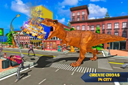 Explore with your dinosaur an entire world. A really amazing dinosaur simulator game: get around with your dinosaur, eat everything you find on your way! Take control of a huge Tyrannosaurus (T-Rex) and rampage the city. Smash into cars. Knock over streetlights, mailboxes. Watch water pour out of the Fire Hydrants as you smash into them. Don't worry, this dinosaur does not eat people. He just likes to play around with them.