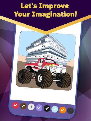 It's very important for Bumblebox Coloring Studio when kids are in process of coloring and nothing stops them from creative moment and that's why Super Car - Coloring by Numbers doesn't have any time limits ⏳
