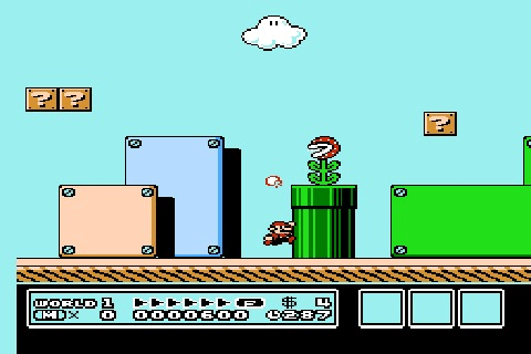 In Super Mario Bros. 3, there are more warps, more chances at extra lives, and new special suits! The Raccoon Suit lets you fly and knock out blocks. The Frog Suit helps you out-swim deadly fish. There are suits for every occasion! Store up flowers and mushrooms to use later on. Play game-show type bonus rounds! Go back to that last screen and get a mushroom! Pause to take a break, then continue where you left off!