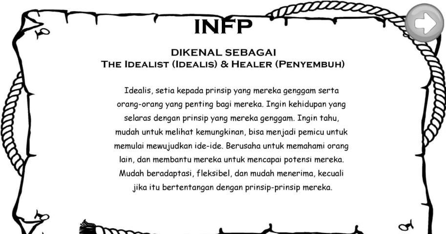 Aplikasi untuk mengetahui Kepribadian diri sendiri beserta nasihatnya, aplikasi ini terdiri dari 3 metode tes yaitu: MBTI, Personality Plus dan Kokology