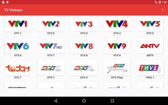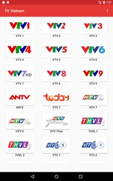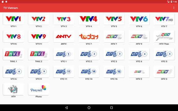 The list of channels include VTV 1, VTV 2, VTV 3, VTV 6, ANTV, VTC 7 or today tv, HTV 7, HTV 9, HTV Thao, THVL 1, THVL 2, VTC 1, VTC 2, Phunu TV etc.