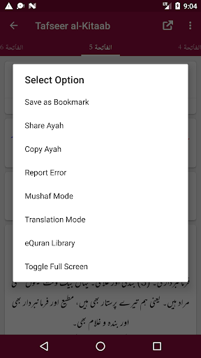 - Share Ayah with or without Quran Translation (Tarjuma) and Tafseer