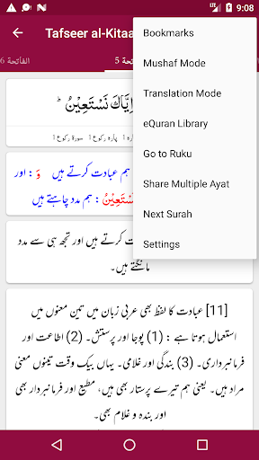 - Mushaf Mode: Recite Quran with Translation (Tarjuma) or Tafseer