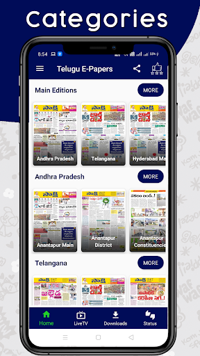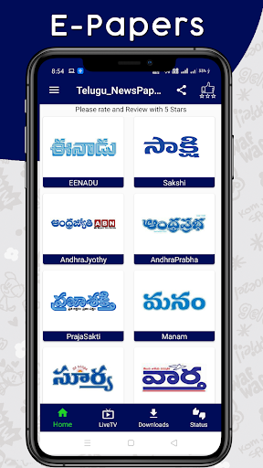 Telugu News Papers Android application brings together all the major Daily Telugu News Papers published in Andhra Pradesh and Telangana states to easy way to read users mobile phones. Users can access, read and save & Download their Daily Telugu News Paper published daily as e Paper.