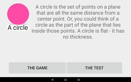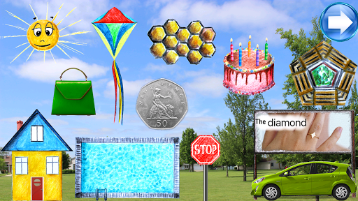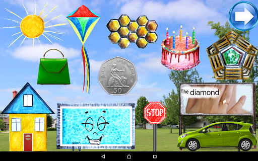 The game aims at explaining different types of geometrical shapes like triangle, square, rectangle, kite, trapezium, pentagon, hexagon, heptagon and circle.