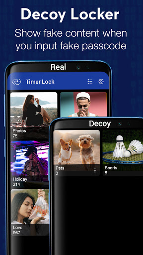 • Decoy vault - Create a second password that opens to a decoy locker if your parents, or any other person tell you to open photo lock or video lock.
