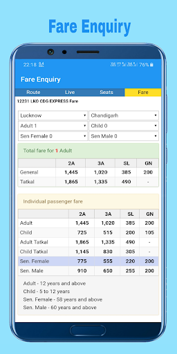 Fare Enquiry : Find fare for all the travel classes like first ac, second ac, third ac, sleeper, etc