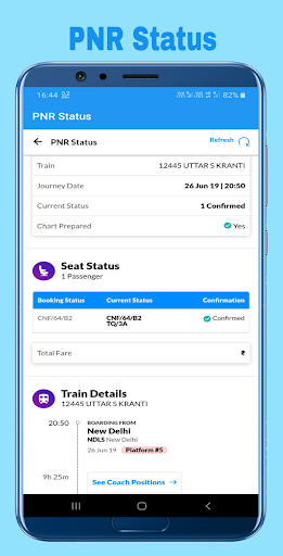 DISCLAIMER: This app provides data from third party websites. This app is not affiliated with NTES or IRCTC in any way. By using this app, you are solely responsible for any legal implications/liabilities arising from using the app.