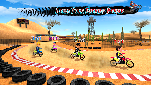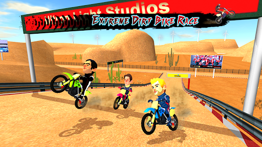 This real dirt bike racing 3d game have lot to offer, this extreme bike race is loaded with cool bike graphics, some challenging racing levels to fight, throw and kick out mad rivals autocross bike to get to finish line first.Use your madmoto racing skills to beat your opponents in this moto pro racing & show your mad trial bike racing skills & prove yourself as the autocross champion in this desert trail dirt bike race.