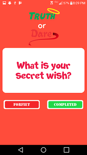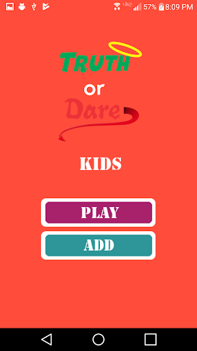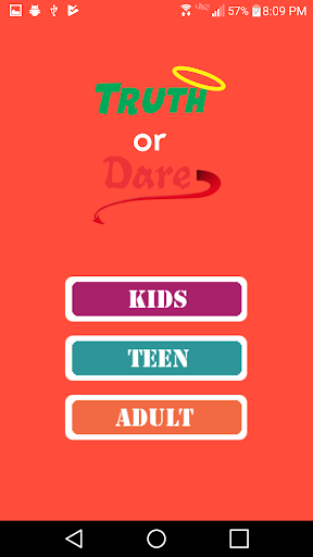 "Truth or Dare" is designed with simple user interface with over 100s of questions relevant for all three categories. The questions differ for every category and can go from the most clean questions perfect for kids to the most dirty questions best suited for adults. Set the player's name in the app and let the fun begin! The game consists of interesting truth and dare questions. The game is very customizable allowing you to add your own questions to the app and make the game even more challenging. Play the game anytime and anywhere in bus, parties, etc. The game will never let you get bored even when you are in a group of strangers. Form the group of 20 or less people and get your app "Truth or Dare" set in your mobile for the truths to get revealed and adventurous daring tasks.