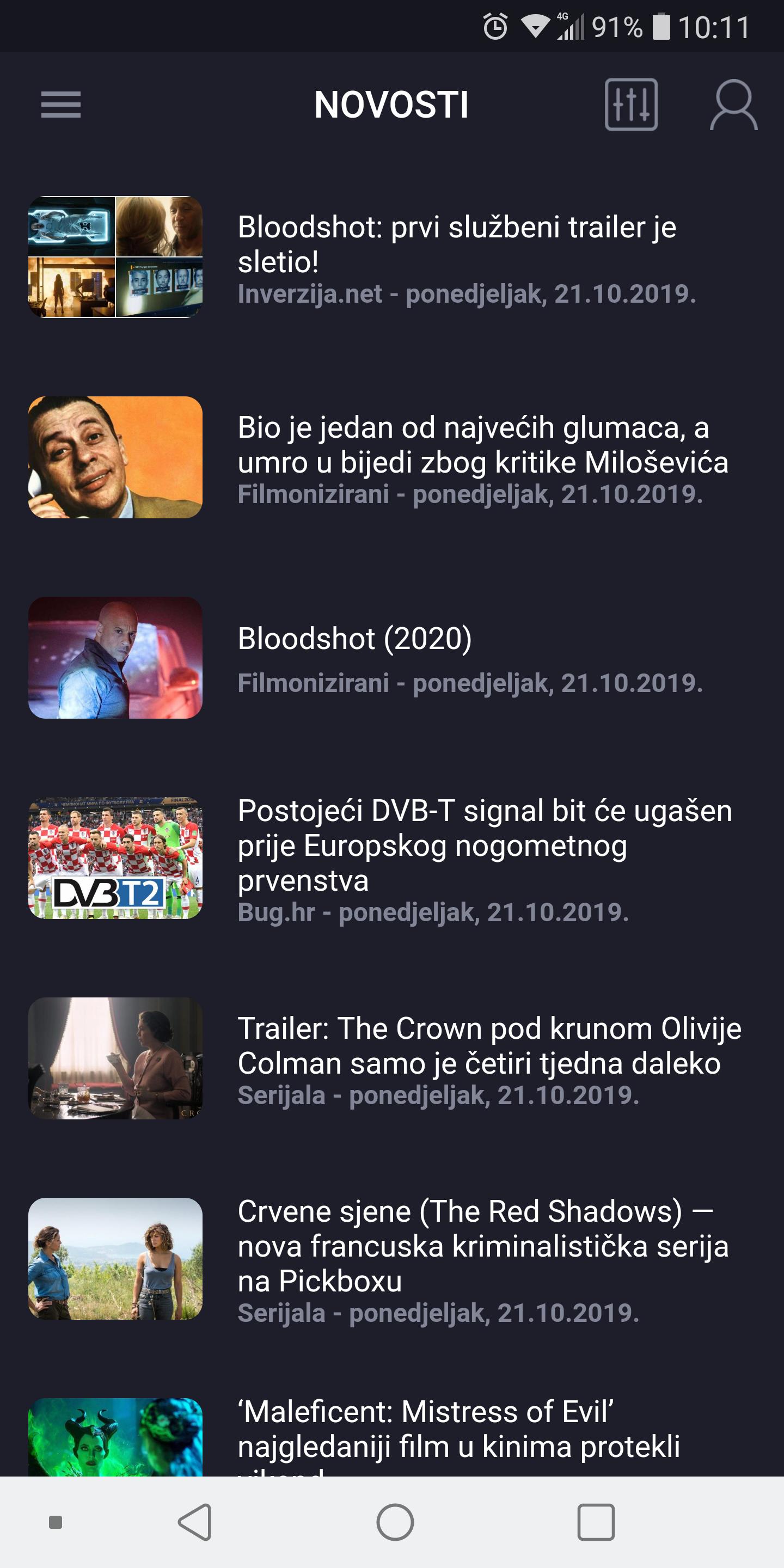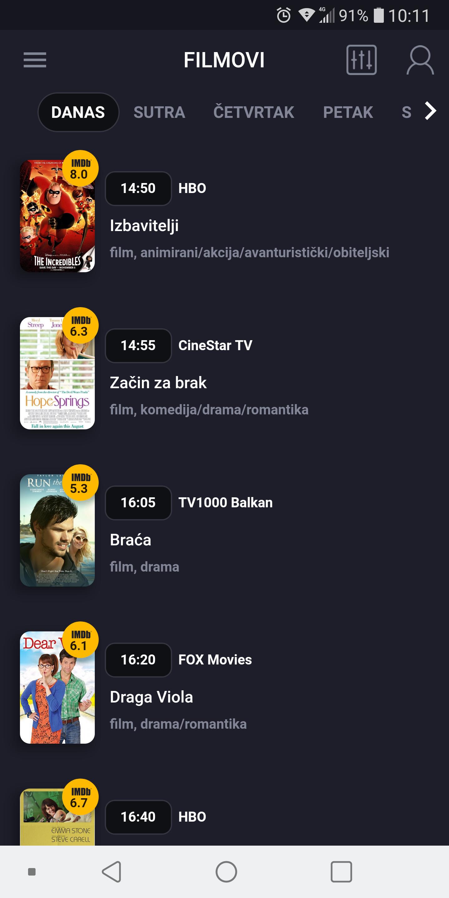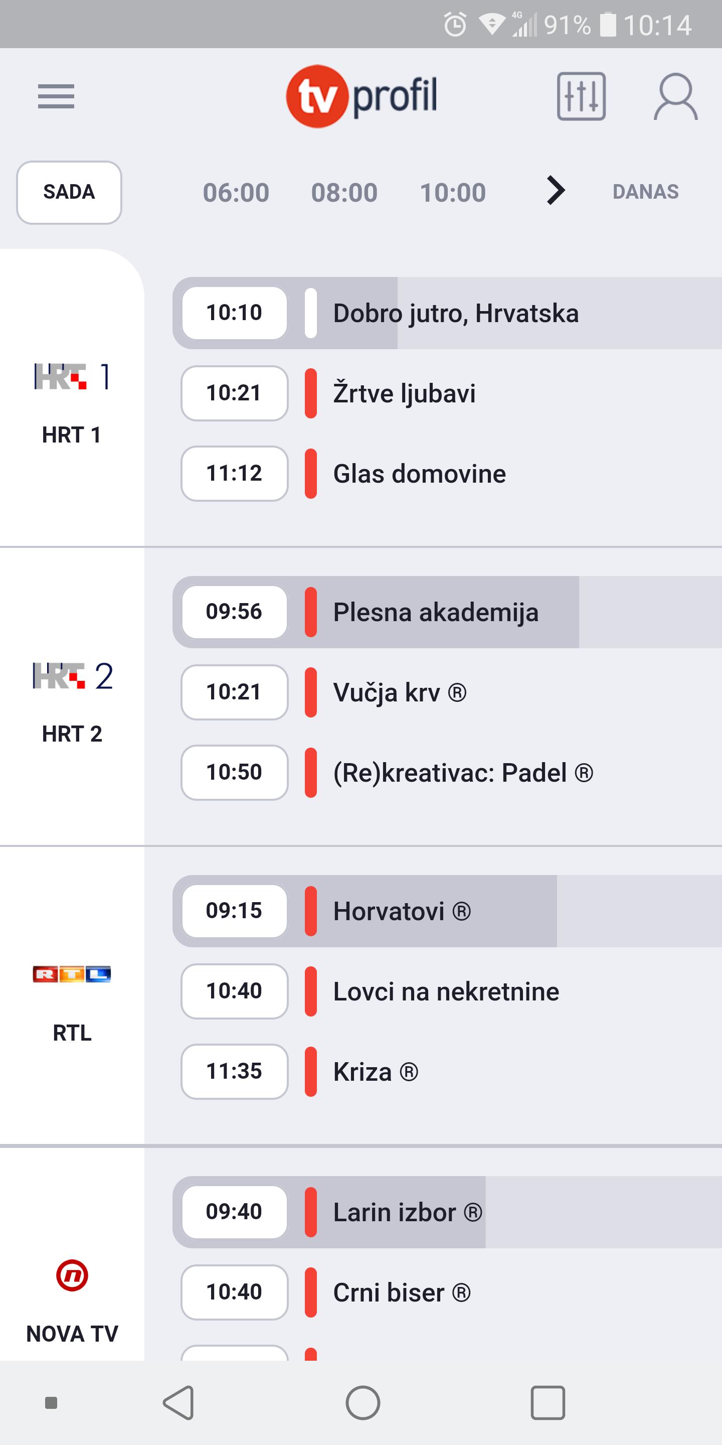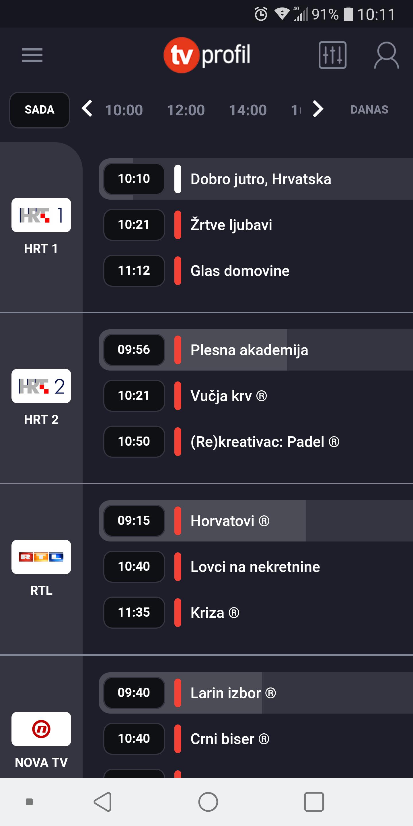 • TV schedule for you favourite channels: HTV, RTL, NOVA, Sportska TV, Eurosport, FOX, HBO, CineStar, BHT1, FTV, OBN, RTS1, PINK, PrvaTV...